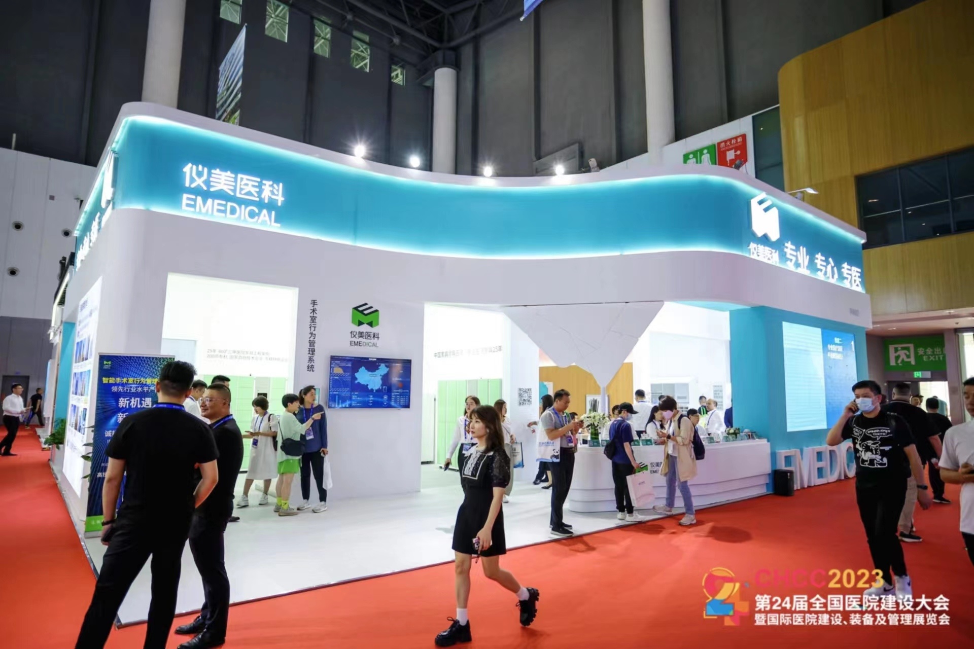 The EME booth is designed with the brand image theme of "Xinglin Huaguang", combining fashion and technological beauty, presenting the characteristics of the Yimei brand and the overall solution of medical furniture from multiple perspectives.